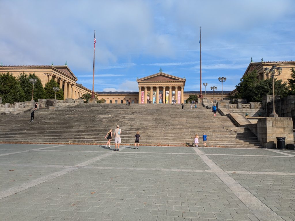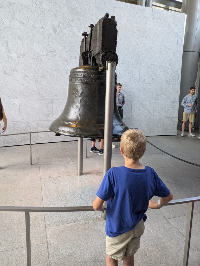 We arrived early in the morning and parked at the Philadelphia Museum of Art as we knew one of things we wanted to visit was the Rocky Steps and statue before they became too crowded. The kids were really into this as we had them watch the first Rocky movie before our vacation. After we did our run up the steps and took a photo with the statue, we continued on down the street and walked to the Liberty Bell. Later in the day when we walked by, the lines here were very long so we were glad we did this first.