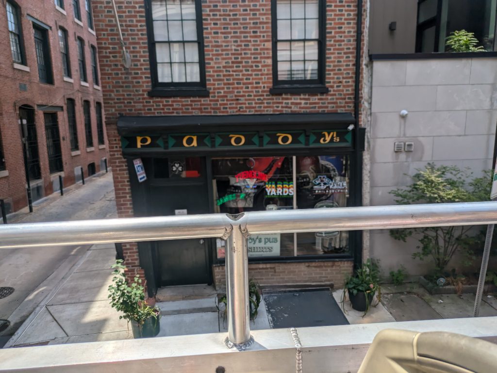 We decided to eat lunch at the museum since it was that time of day and there was a great variety of food being served, including freshly made Philly cheese steak sandwiches. There was also a variety of fresh fruit options which the kids enjoyed. This was a great choice for food that day for our family, however there is a stop on the bus that came highly recommended as a stop for lunch if you have more time than we did. It is called the Reading Terminal Market and we definitely will make this as a stop on our next tour of Philadelphia. If you are a fan of It’s Always Sunny in Philadelphia, you may want to make a stop at Paddy’s Pub also. The hop on hop off tour points out this location too.