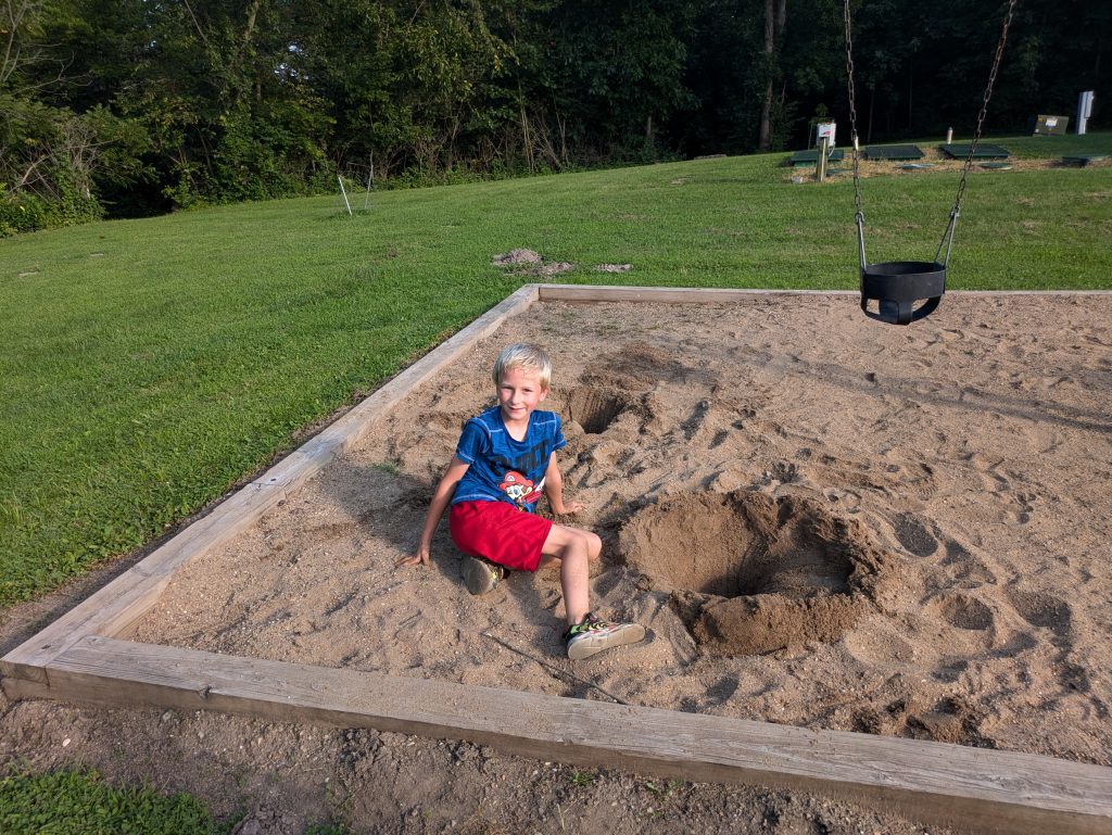 The park was a bare bones park that included a swing set with a sand bottom but the kids enjoyed playing at it.